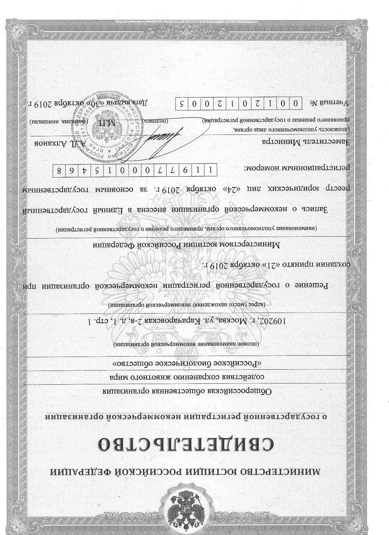 ■ Общероссийская общественная организация содействия сохранению животного мира "Российское биологическое общество" официально зарегистрирована! https://www.rusprofile.ru/id/11918281